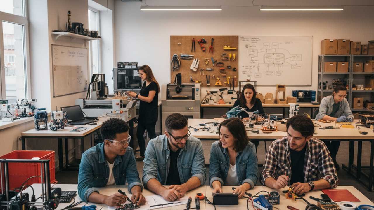 Imagine a room buzzing with the hum of 3D printers, the rhythmic tapping of keyboards, and the sharp scent of freshly cut wood. This is